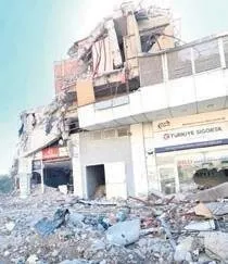 - Müteahhit, iki bina yapmış... Biri şu, sapasağlam... Diğer binanın alt katında kolon kesilmiş... Yerle bir... Ölen çok... Onun enkazını kaldırıyoruz.
