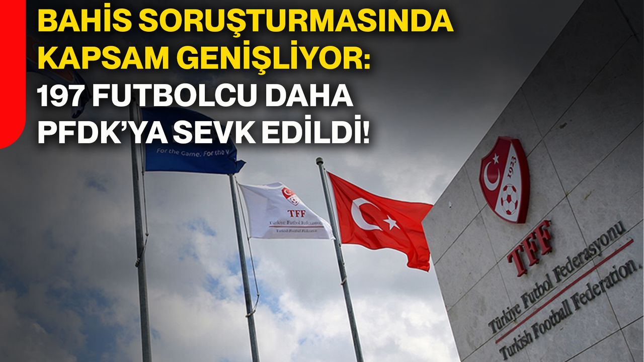 Türkiye Futbol Federasyonu (TFF), profesyonel liglerde yer almasına rağmen amatör statüde bulunan 197 futbolcunun, bahis oynadıkları tespit edildiği gerekçesiyle Profesyonel Futbol Disiplin Kurulu’na (PFDK) sevk edildiğini duyurdu. Böylece kapsamlı soruşturma çerçevesinde PFDK’ya sevk edilen futbolcu sayısı daha da arttı.