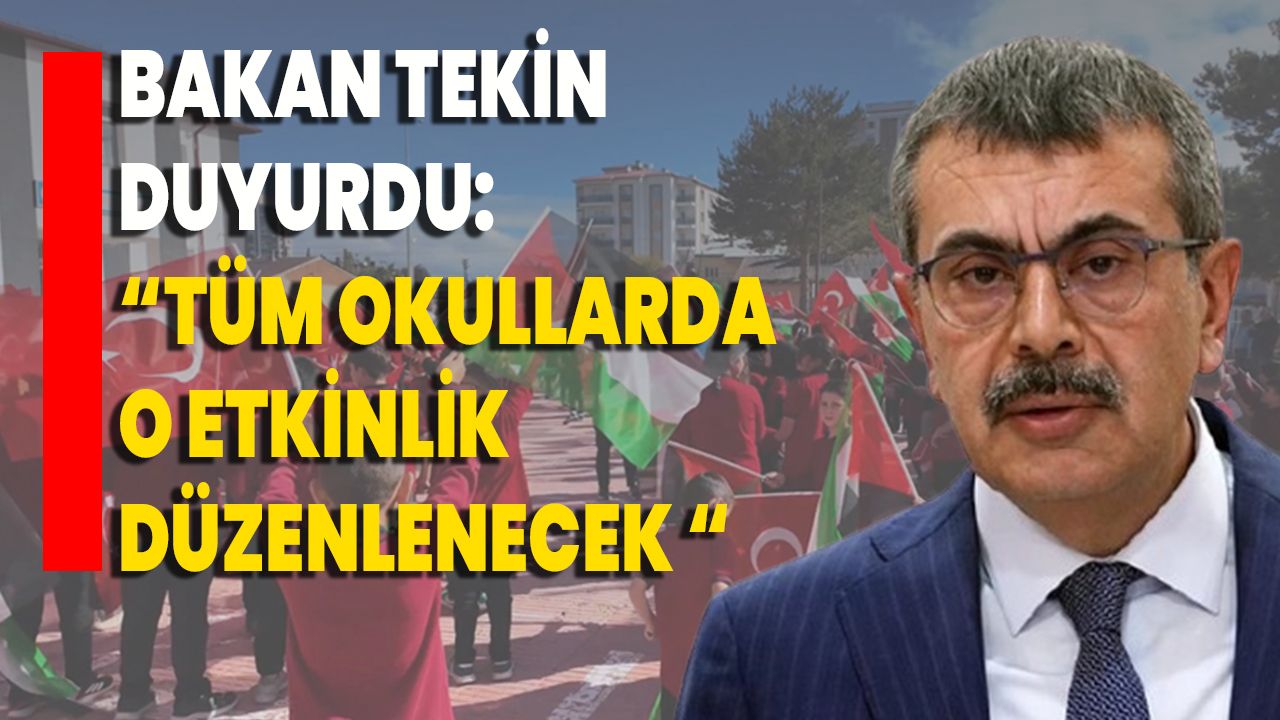"Bu anlayışla, Milli Eğitim Bakanlığı olarak 81 ilimize gönderdiğimiz yazı doğrultusunda, tüm okullarımızda eşzamanlı olarak öğrencilerimizin katılımıyla Filistin ve Gazze temalı farkındalık etkinlikleri düzenleyeceğiz. Amacımız, çocuklarımıza sadece bilgi kazandırmak değil, vicdanı, adaleti ve insan olmanın sorumluluğunu da öğretmek. Çünkü insanın içindeki iyilik yeşermedikçe, hiçbir bilgi meyve vermez. Türkiye Yüzyılı Maarif Modeli'nin merkezinde yer alan 'Erdem-Değer-Eylem' anlayışıyla barışa, insan haklarına ve evrensel değerlere saygılı bir nesil yetiştirmeye kararlıyız. Filistin ve Gazze'de yaşanan acılara duyarsız kalmadan, insanlık onurunu savunma bilincini çocuklarımızda yaşatmak hepimizin ortak görevi. Bu anlamlı sürece yürekten destek verecek tüm öğretmenlerimize, yöneticilerimize, velilerimize ve öğrencilerimize şimdiden teşekkür ediyorum."