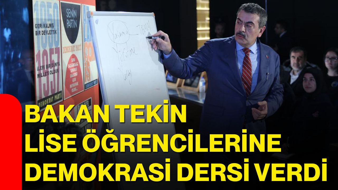 Milli Eğitim Bakanı Yusuf Tekin, Adnan Menderes Müzesi’ni ziyareti kapsamında lise öğrencilerine yönelik “Demokrasi ve İnsan” konulu ders anlattı. Ankara Üniversitesi Siyasal Bilgiler Fakültesi mezunu olduğunu ve yüksek lisansında Türk demokrasi tarihi üzerine çalıştığını ifade eden Tekin, öğrencilere Türkiye’nin demokrasi sürecine ilişkin kapsamlı bilgiler aktardı.