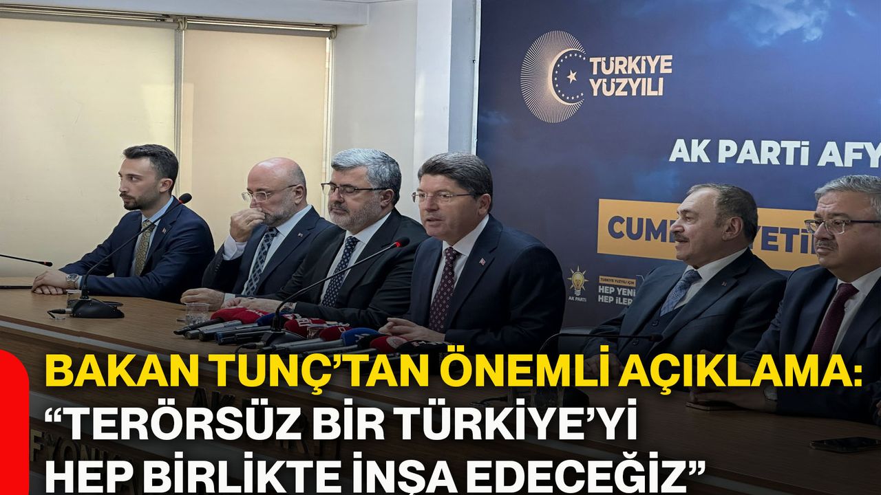 Hakimler ve Savcılar Kurulu Yıl Sonu Değerlendirme Toplantısı için Afyonkarahisar’a gelen Adalet Bakanı Yılmaz Tunç, programı kapsamında Adalet ve Kalkınma Partisi Afyonkarahisar İl Başkanlığını ziyaret etti. Partililerle bir araya gelen Adalet Bakanı Yılmaz Tunç, Türkiye’nin geleceğine ilişkin önemli mesajlar verdi. Konuşmasına Türkiye’nin terörle mücadelesine değinerek başlayan Adalet Bakanı Yılmaz Tunç, “İnşallah terörsüz bir Türkiye’yi hep birlikte inşa edeceğiz. Türkiye’nin önünü açacak olan yeni, sivil ve demokratik anayasanın yapılması için Meclis’te geniş bir uzlaşma sağlamamız gerekiyor. Bu milletimize borcumuzdur” dedi.