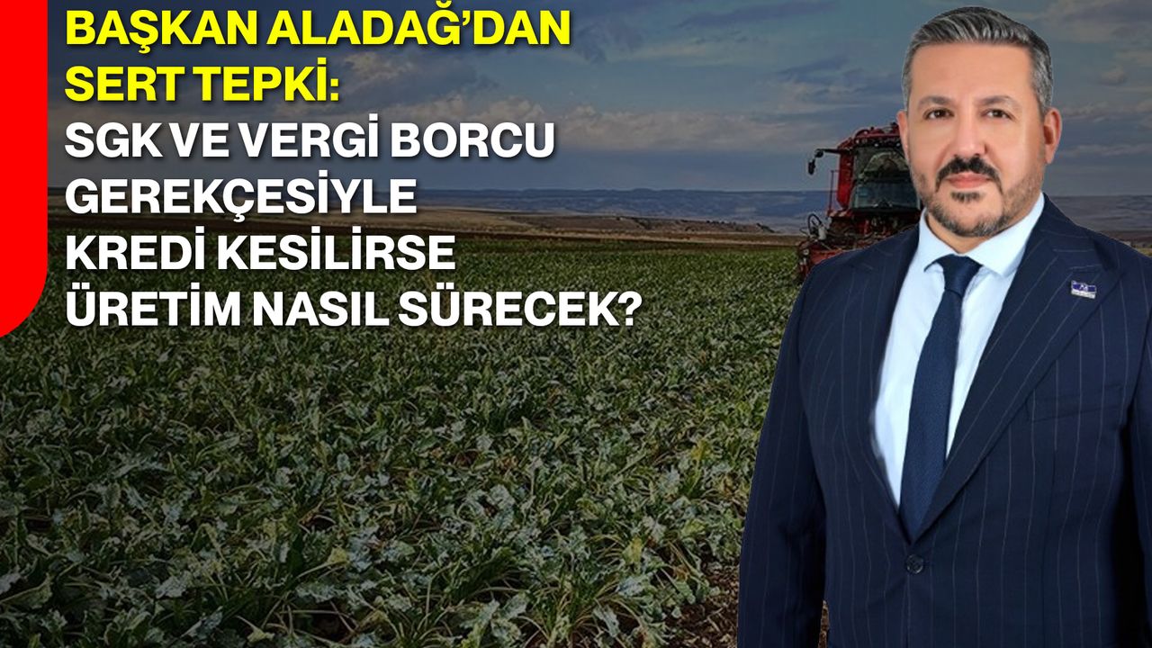 Başkan Aladağ, SGK prim ve vergi borcu bulunan çiftçilere kredi verilmemesinin yanlış bir uygulama olduğunu belirterek, “Türkiye Ziraat Odaları Birliği tarafından da kamuoyuna duyurulduğu üzere; SGK prim ve vergi borcu bulunan çiftçilerimize kredi verilmemesi, tarımsal üretimi doğrudan sekteye uğratan, çiftçiyi çaresizliğe iten yanlış bir uygulamadır. Aynı anlayış bugün küçük ve büyük esnafı, şoför esnafını da krediye erişimden mahrum bırakmaktadır” dedi.