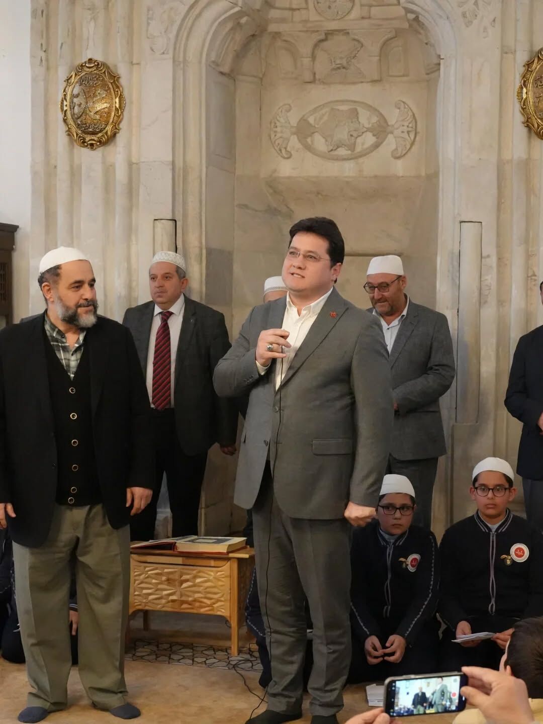 Hacı Mahmut ve Çarşı Camii’nde yoğun katılımla gerçekleştirilen programda, mukabelenin son bölümü okunarak hatim duası yapıldı. Camide duygu dolu anlar yaşanırken, küçük hafızların huzur veren tilavetleri büyük beğeni topladı. Programın ardından Bolvadin Başkan Derviş Aynacı, geleceğin teminatı olarak gördüğü 18 minik hafızla yakından ilgilendi. Aynacı, her bir hafıza kendi şahsı adına çeyrek altın hediye ederek anlamlı bir jestte bulundu.