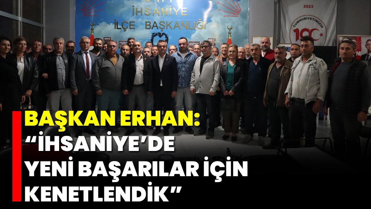 İhsaniye örgütünün kararlılığına dikkat çeken Başkan Erhan, “İhsaniye’de yeni başarılar için kenetlendik. Örgütümüzün azmi, dayanışması ve inancı bize güç veriyor. El ele, omuz omuza çalışarak partimizi ilçemizde hak ettiği noktaya taşıyacağız” ifadelerini kullandı.