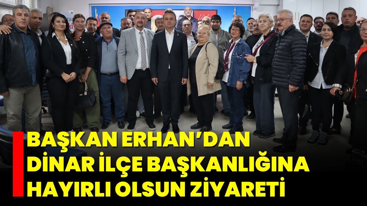 Cumhuriyet Halk Partisi (CHP) Afyonkarahisar İl Başkanı Faruk Duha Erhan, yeni seçilen Dinar İlçe Başkanı Ali Arıkan ve yönetim kuruluna hayırlı olsun ziyaretinde bulundu. Ziyarette, partinin yerel yapılanması ve önümüzdeki süreçte izlenecek politikalar üzerine görüş alışverişinde bulunuldu.
