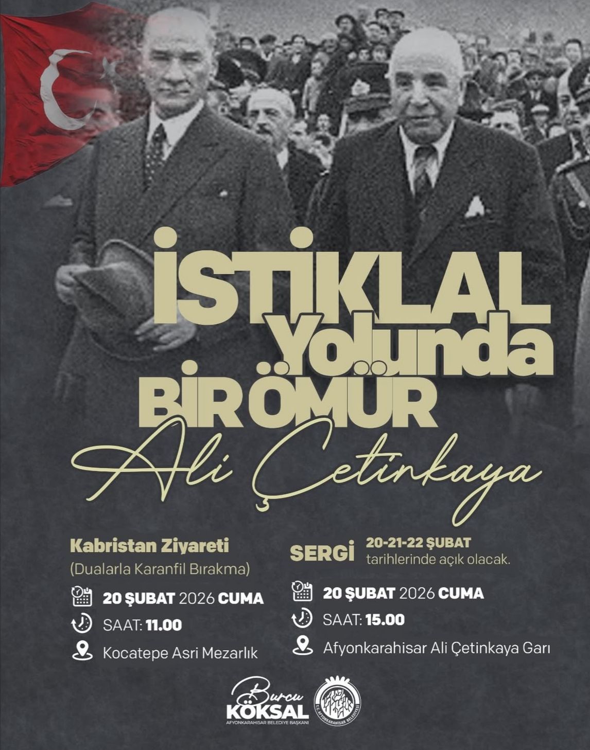 Program çerçevesinde ayrıca Ali Çetinkaya’nın hayatı ve Milli Mücadele dönemindeki rolünü anlatan sergi açılışı da yapılacak. Sergi, 20 Şubat 2026 Cuma günü saat 15.00’te Afyonkarahisar Ali Çetinkaya Garı’nda açılacak ve 20-21-22 Şubat tarihleri boyunca ziyaretçilere açık olacak.
