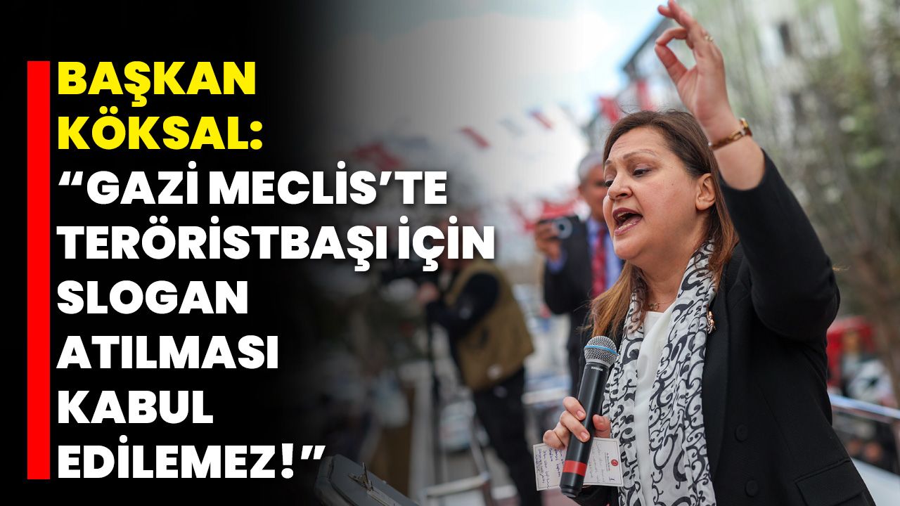 Başkan Köksal, yaşanan olaya ilişkin sert bir açıklama yaparak, “Gazi Mecliste teröristbaşı için slogan atılması, Kürdistan laflarının edilmesi kabul edilemez. Bizim devletimiz Türkiye Cumhuriyeti’dir, önderimiz Gazi Mustafa Kemal Atatürk’tür. Bayrağımız ay-yıldızlı al bayraktır” ifadelerini kullandı.