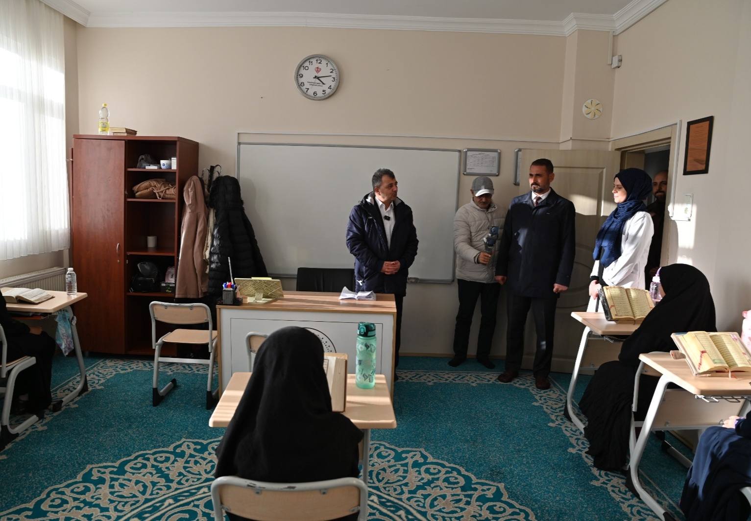 Emirdağ Belediye Başkanı Serkan Koyuncu, Aziziye Kız Kur’an Kursu’nu ziyaret ederek burada yürütülen eğitim faaliyetleri hakkında bilgi aldı.