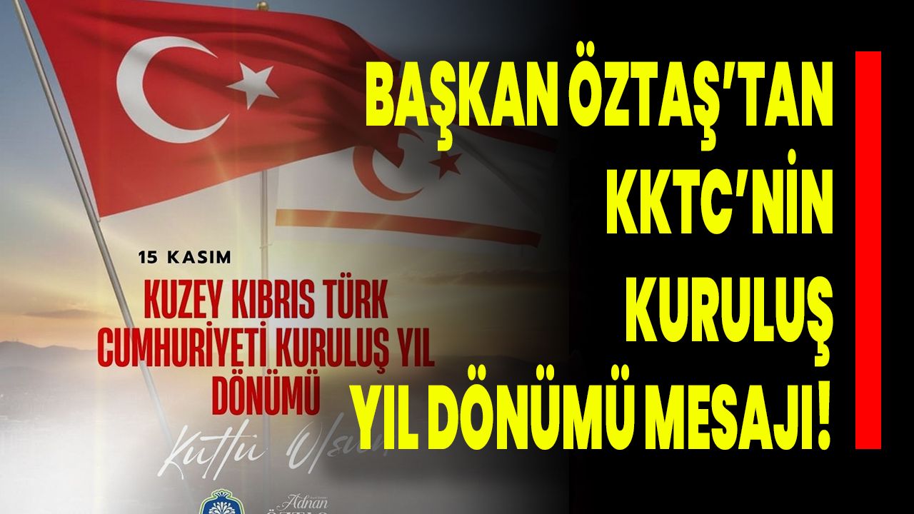 Başkan Öztaş mesajında şu ifadelere yer verdi: “Kuzey Kıbrıs Türk Cumhuriyeti’nin kuruluş yıl dönümünü kutluyor, Kıbrıs Türk halkının özgürlük ve bağımsızlık mücadelesini saygıyla yâd ediyoruz. Ana vatan–yavru vatan gönül bağımız ilelebet sürecek; KKTC’nin huzur ve refahı için her zaman kardeşlerimizin yanında olmaya devam edeceğiz.”