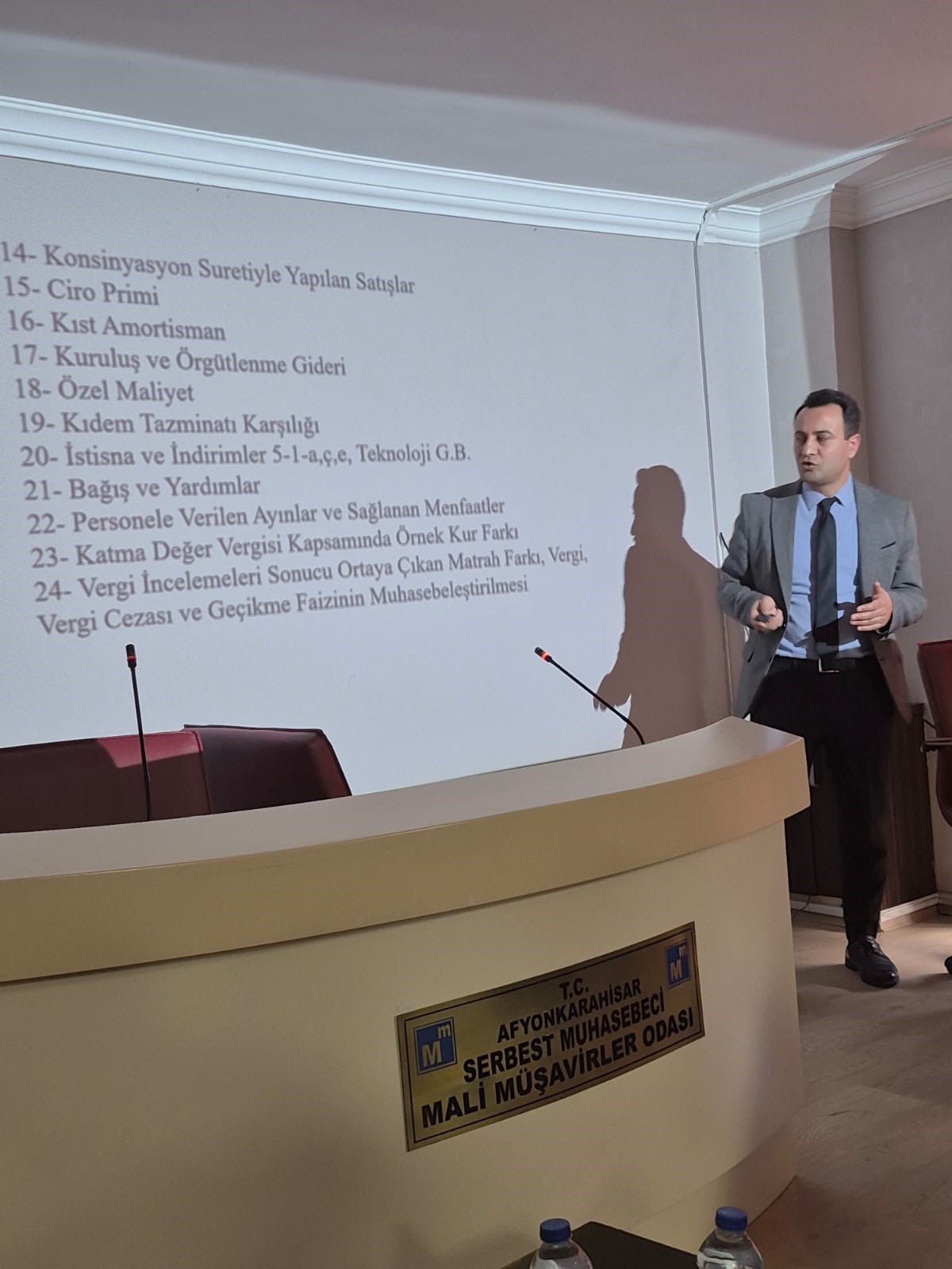 Seminer kapsamında katılımcılara; Muhasebe–vergi ilişkisi, ticari kâr ve mali kâr ayrımı, yıllara yaygın inşaat ve onarım işleri, sermaye artırımında indirim, amortismana tabi malların satışı, şüpheli, değersiz ve vazgeçilen alacaklar, stok değerleme yöntemleri ve stok değer düşüklüğü karşılıkları, çalınma, yangın, sel gibi olağanüstü durumlarda uygulanacak süreçler, indirilemeyecek KDV gibi birçok konuda kapsamlı bilgilendirme yapıldı.