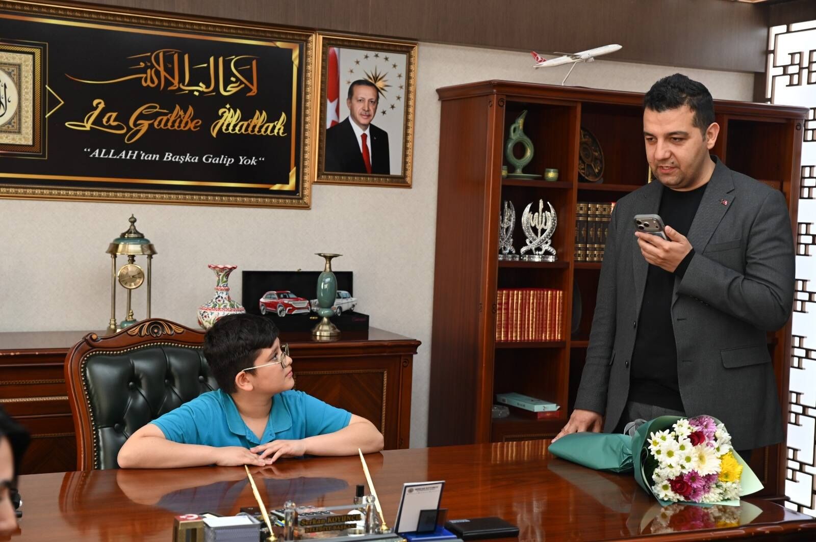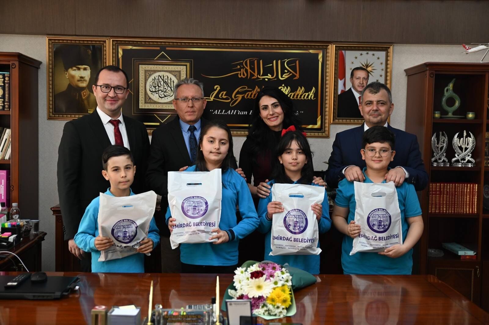 Günün anlam ve önemine binaen Fatih İlkokulu Müdürü Ali Kubat, öğretmenler ve öğrenciler belediyeyi ziyaret ederek Başkan Koyuncu ile bir araya geldi. Ziyaret sırasında makam koltuğuna oturan minik öğrenciler, Emirdağ için hayallerini ve projelerini dile getirdi. Çocukların heyecanı ve verdikleri temsili talimatlar, belediye binasında gülümseten anlara sahne oldu.