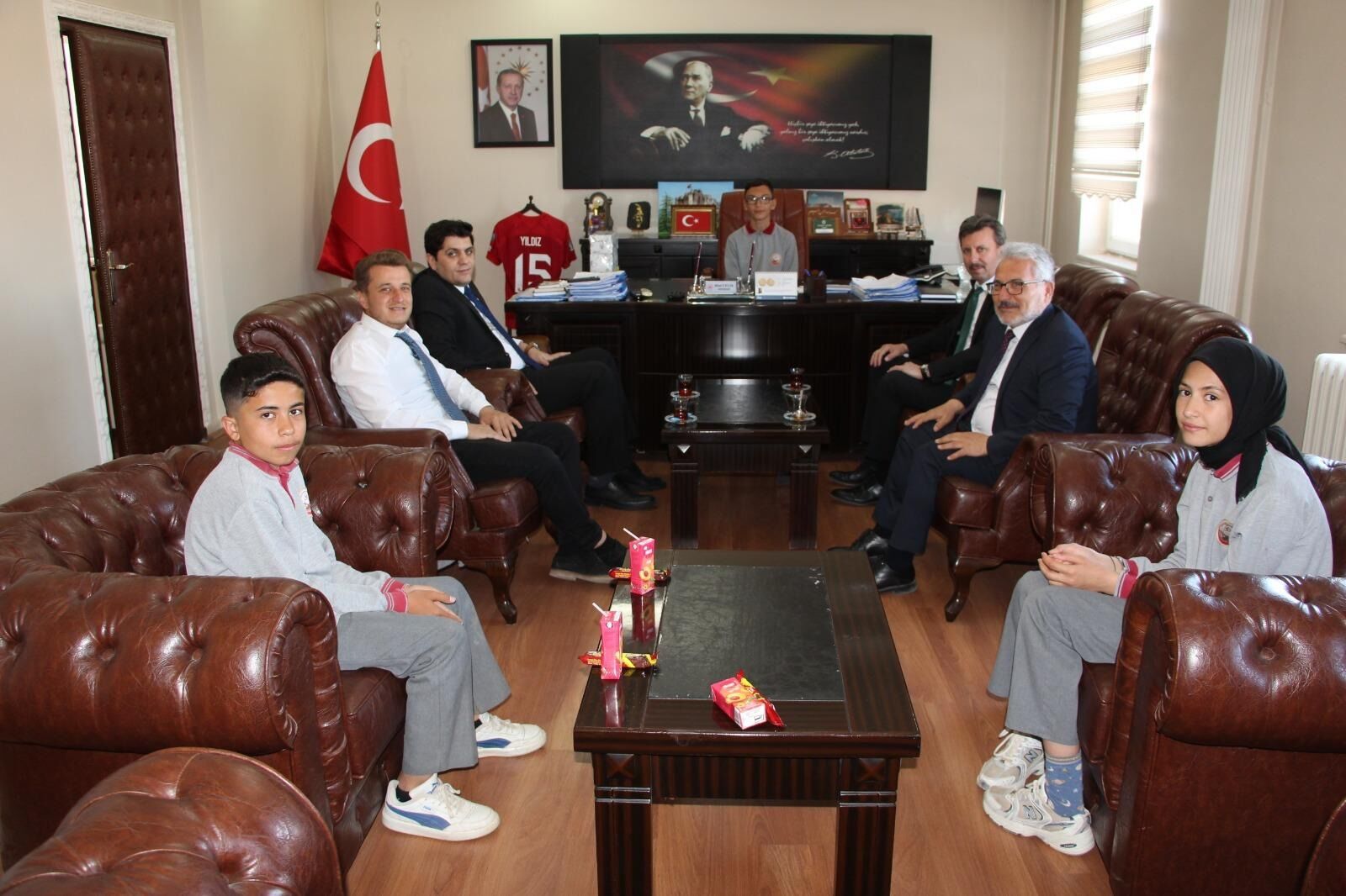 Şehit Hakan Köroğlu Anadolu İmam Hatip Lisesi ve Ortaokulu öğrencileri Betül Sağlık, Ahmet Köylü ve Veli Gümüştaş; İlçe Milli Eğitim Müdürü Yasin Filiz, Okul Müdürü Erkut Yılmaz ve öğretmen Kadir Kırmızıoğlu eşliğinde Başmakçı Kaymakamı Bilal Çelik’i makamında ziyaret etti.