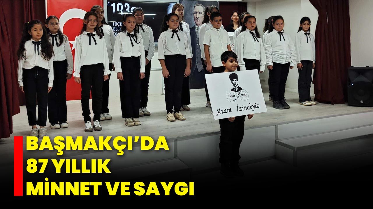Başmakçı’da, Türkiye Cumhuriyeti’nin kurucusu Gazi Mustafa Kemal Atatürk’ün ebediyete intikalinin 87. yıl dönümü dola anma töreni düzenlendi. Yurt genelinde eş zamanlı olarak icra edilen program kapsamında ilçede de resmi törenler gerçekleştirildi. Hükûmet Konağı önünde bulunan Anıt Alanı’nda başlayan programda Kaymakam Bilal Çelik ve Belediye Başkanı Selçuk Gönüllü çelenk sundu. Sirenler eşliğinde saygı duruşunda bulunulmasının ardından İstiklâl Marşı okundu.