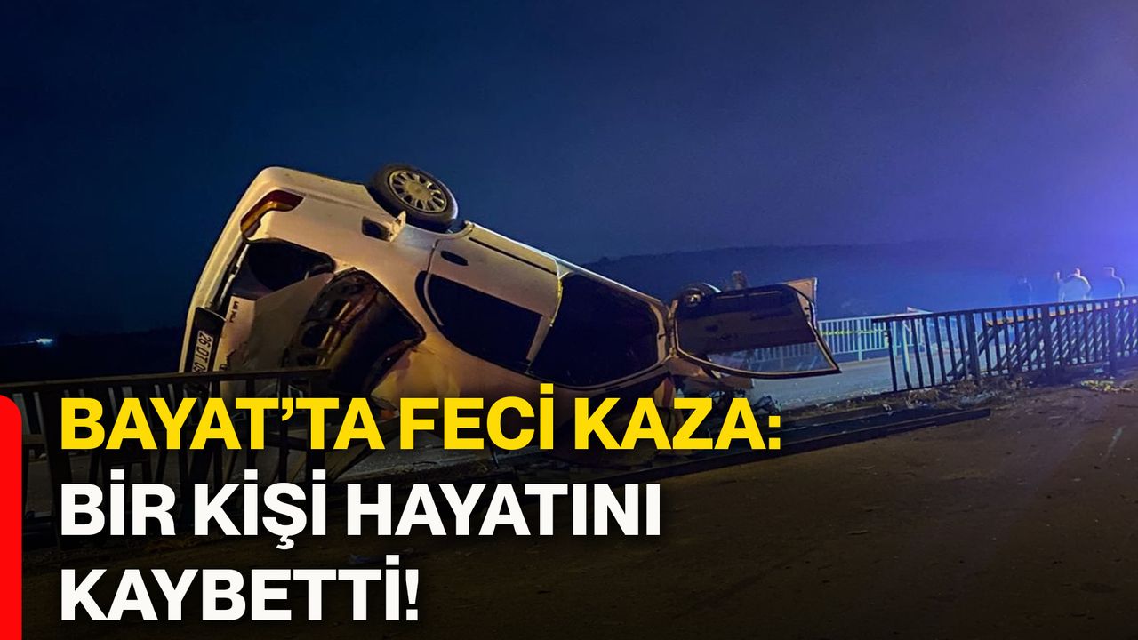 Edinilen bilgilere göre, A.A. yönetimindeki 26 DT 095 plakalı otomobil, Bayat-Emirdağ kara yolu üzerindeki Mimar Sinan Caddesi mevkisinde henüz belirlenemeyen bir nedenle kontrolden çıkarak köprü demirlerine çarptı ve ardından takla attı.