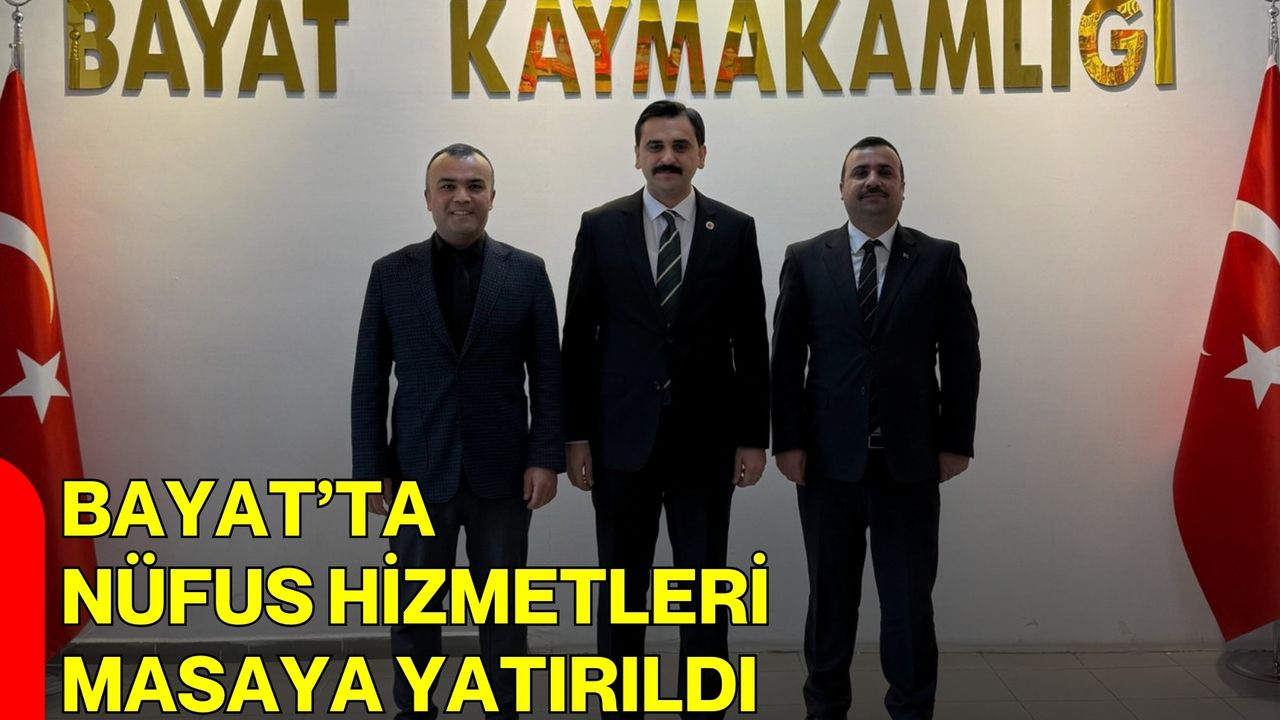 Afyonkarahisar İl Nüfus ve Vatandaşlık İşleri Müdürü Erkan Tanyeri ile Bayat İlçe Nüfus Müdürü Önder Serçe, Ahmet Akdağ’ı makamında ziyaret etti. Gerçekleştirilen ziyarette ilçede yürütülen nüfus hizmetleri ve kamu hizmetlerinin koordinasyonu üzerine değerlendirmelerde bulunuldu. Ziyaretin, kurumlar arası iş birliği ve hizmet süreçlerinin daha etkin yürütülmesi açısından önem taşıdığı belirtildi.