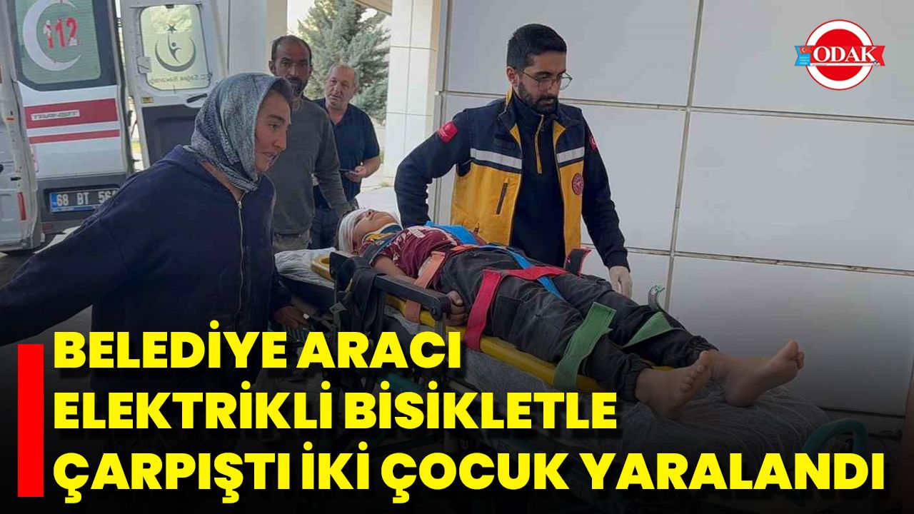 Aksaray’ın Sultanhanı ilçesinde, belediyeye ait su arıza hizmet aracının elektrikli bisikletle çarpışması sonucu iki çocuk yaralandı.