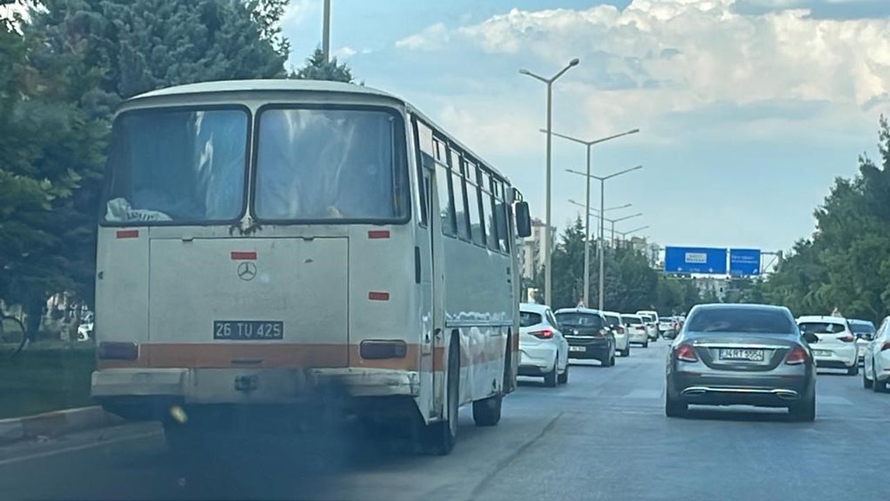 Eskişehir’de sürücüsünün her gaza bastığında arkasında yoğun bir siyah duman oluşturan eski model belediye otobüsü trafikteki sürücülerin tepkisine neden oldu.
