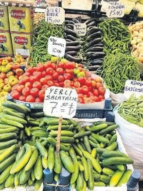 Yerli domates 10, yerli patlıcan 10, yerli salatalık 7.5 lira.