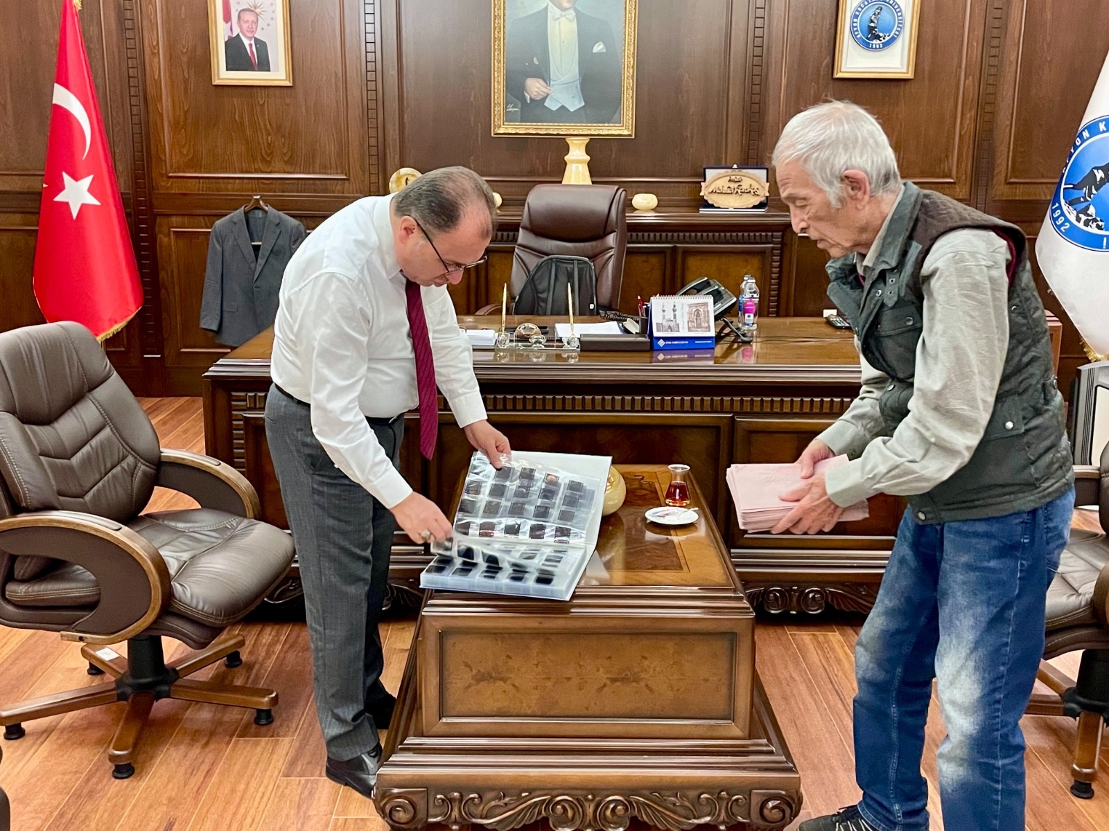 Afyon Kocatepe Üniversitesi emekli öğretim görevlisi ve Afyonkarahisar İl Kültür ve Turizm eski Müdürü Muzaffer Uyan, Rektör Prof. Dr. Mehmet Karakaş’ı makamında ziyaret ederek Afyonkarahisar fotoğraf arşivini üniversiteye hediye etti.