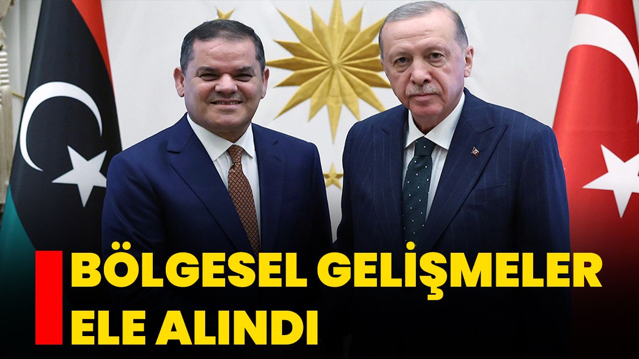 Cumhurbaşkanlığı İletişim Başkanlığı’ndan yapılan açıklamaya göre, görüşmede Türkiye ile Libya arasındaki ikili ilişkiler ve bölgesel gelişmeler ele alındı. Cumhurbaşkanı Erdoğan, Türkiye’nin Libya’daki gelişmeleri yakından takip ettiğini, ülkede güvenlik ve istikrarın sağlanması için üzerine düşeni yapmaya devam edeceğini vurguladı. Erdoğan ayrıca, Türkiye-Libya arasındaki iş birliğinin özellikle enerji alanında büyük önem taşıdığını belirterek, iki ülkenin Doğu Akdeniz’deki hak ve menfaatlerinin korunması için dayanışma içinde yürütülen çalışmaların süreceğini ifade etti.
