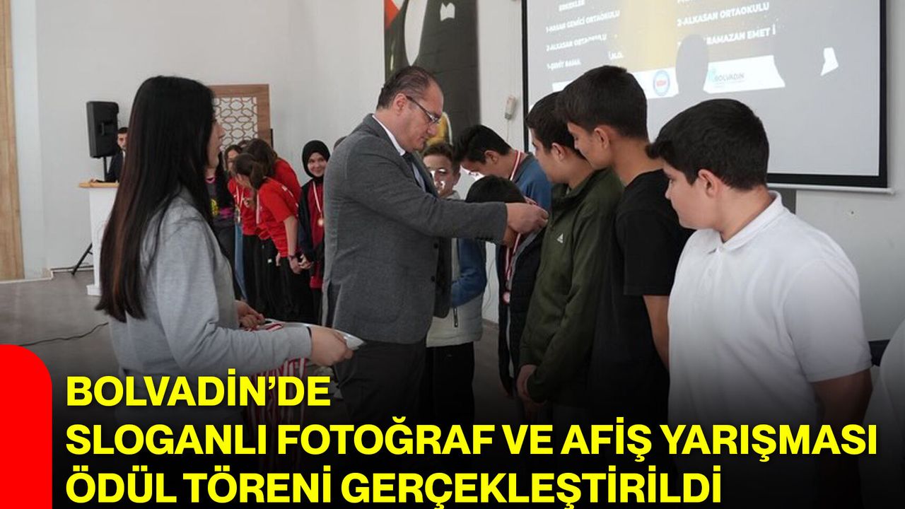 Bolvadin’de çevre ve trafik bilincinin artırılması amacıyla düzenlenen “Sloganlı Fotoğraf ve Afiş Yarışması”nın ödül töreni ve sergisi gerçekleştirildi. Bolvadin Kaymakamlığı, Bolvadin Belediyesi, İlçe Milli Eğitim Müdürlüğü ve İlçe Emniyet Müdürlüğü iş birliğiyle düzenlenen program, Bolvadin Konferans Salonu’nda yoğun katılımla yapıldı. Etkinlikte öğrencilerin hazırladığı çalışmalar sergilenirken, dereceye giren eser sahipleri ödüllendirildi.