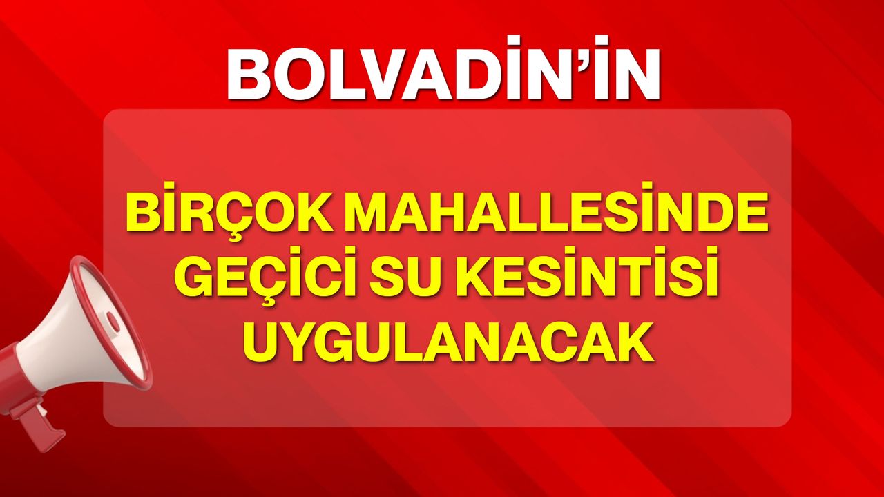 Bolvadin Belediyesi tarafından yapılan açıklamada, ana su hattında meydana gelen arıza sebebiyle ilçeye bağlı mahallelerin büyük bir bölümünde geçici süreyle su kesintisi yaşanacağı duyuruldu. Kesintinin, arızanın giderilmesine yönelik yürütülen teknik çalışmalar süresince devam edeceği belirtildi.