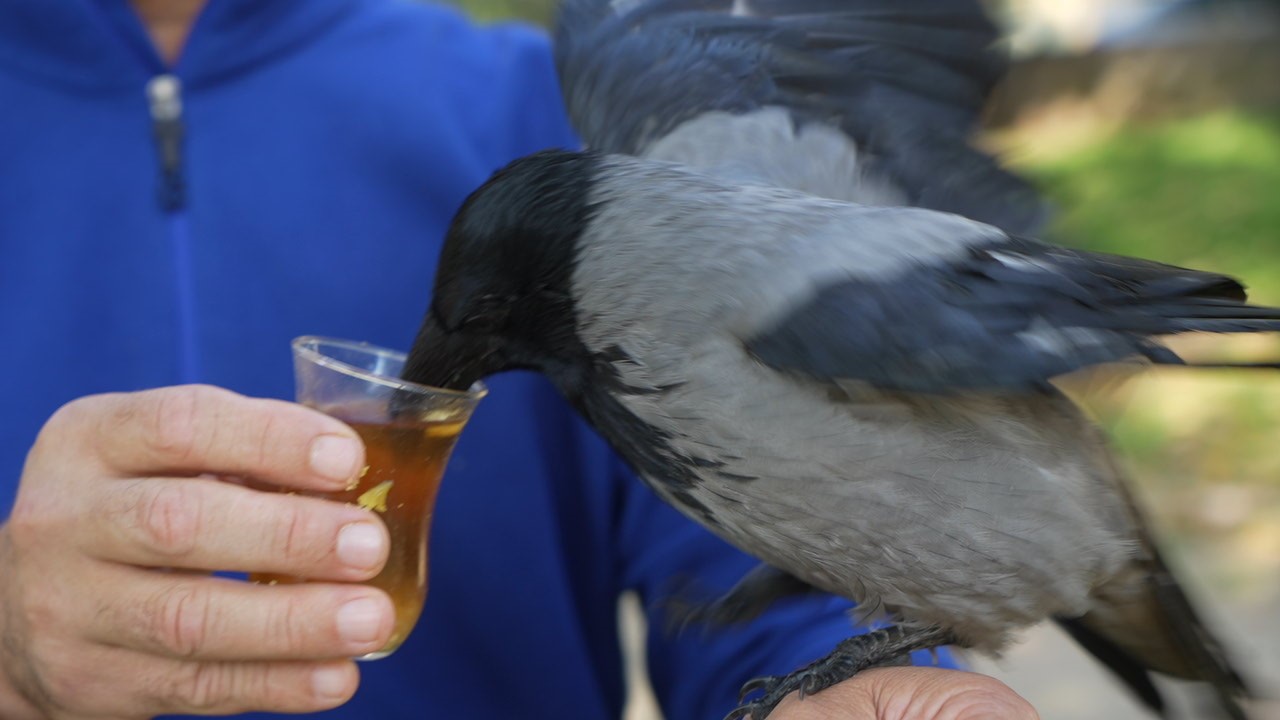 Evladı gibi gördüğü kargasıyla 2,5 yıldır ayrılmaz bir dostluk kuran Tek, Şakir'i Rize'den özel getirttiği helva, balık ve sadece organik gıdalarla besliyor. Sevimli karga, çay içmesi ve markette yiyeceklerini gagasıyla seçmesiyle de dikkat çekiyor.