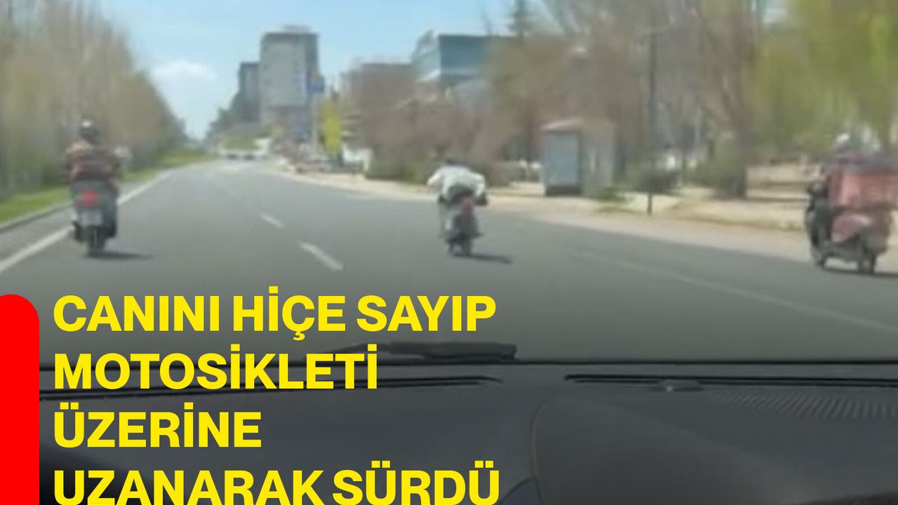 Olay, Malatya Caddesi’nde meydana geldi. Edinilen bilgiye göre, bir şahıs motosikleti üzerine uzanarak sürdü. Kask dahil hiçbir önlem almayan sürücü, yaptığı davranışla da adete canını hiçe saydı. Bir süre motosikletin üzerine uzanarak giden sürücü, trafikteki başka bir sürücünün cep telefonu kamerasına yansıdı.