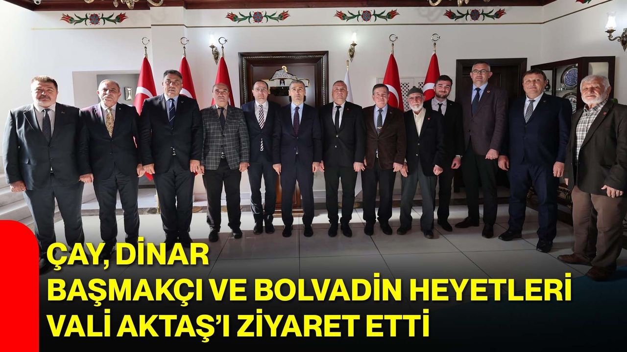 Afyonkarahisar Valisi Dr. Naci Aktaş, hayırlı olsun ziyaretleri kapsamında Çay, Dinar, Başmakçı ve Bolvadin ilçelerinden gelen heyetleri ağırladı. Ziyaretlerde kaymakamlar, belediye başkanları, il genel meclisi üyeleri ve siyasi parti temsilcileri hazır bulundu. İlçelerin idari ve yerel yönetim temsilcileriyle yapılan görüşmelerde birlik ve beraberlik vurgusu öne çıktı.