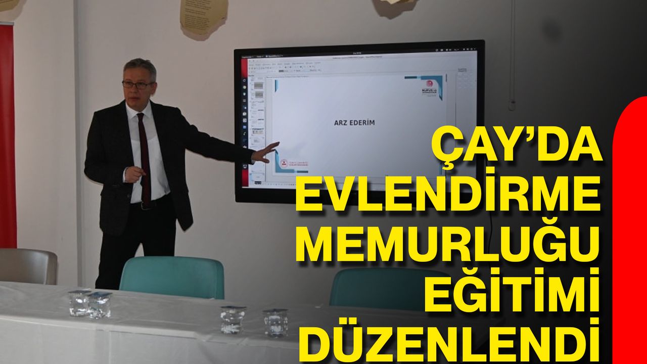 T.C. Çay Kaymakamlığı tarafından ilçede evlendirme hizmetlerinin daha etkin ve doğru şekilde yürütülmesi amacıyla bir eğitim programı gerçekleştirildi. Programa Kaymakam Hasan Hüsnü Türker’in yanı sıra Nüfus Müdürü M. Hakan Kucur, Özel İdare Müdürü Yakup Güçlü, Gençlik ve Spor Müdürü Akif Taşpınar, İlçe Müftüsü Ali Çetin ile köy ve mahalle muhtarları katıldı.