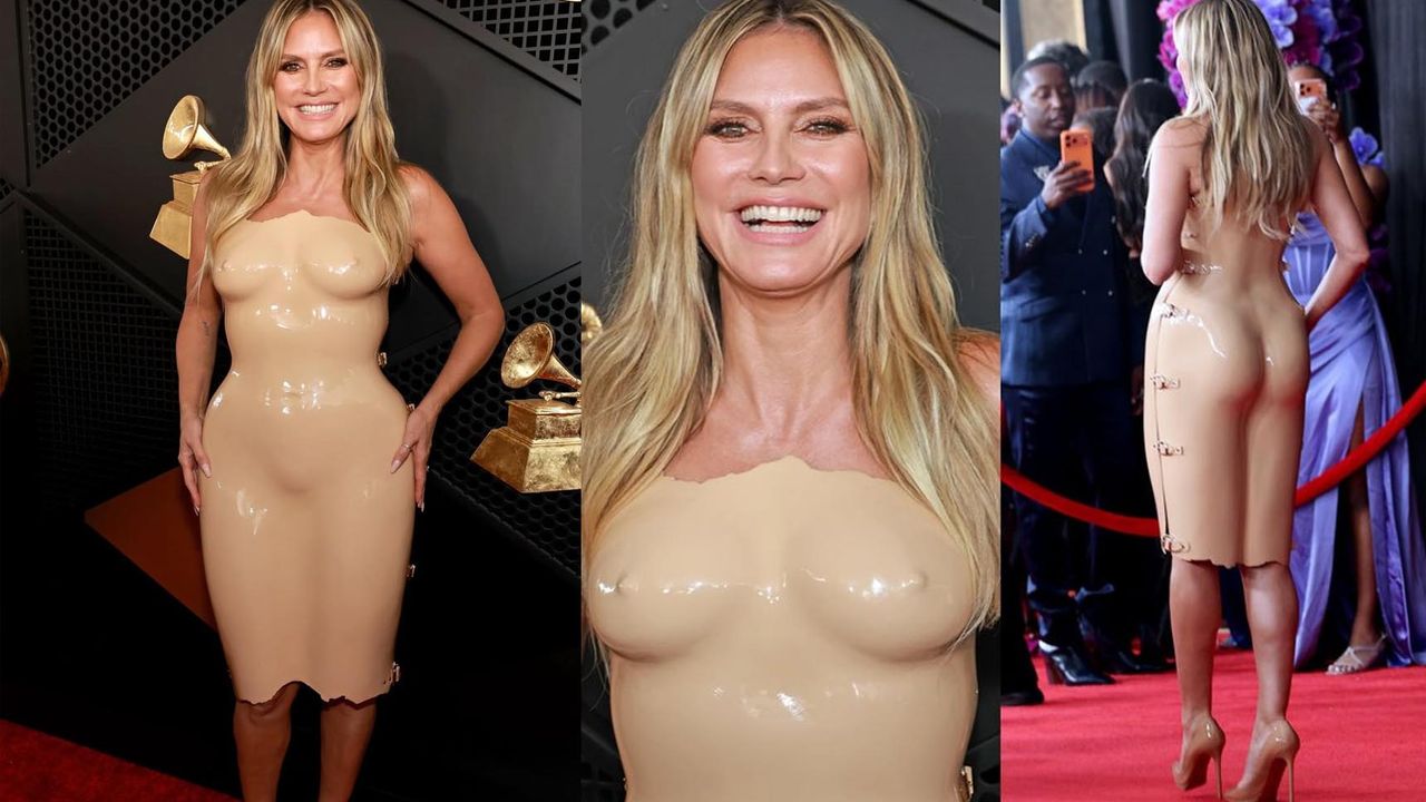 Kırmızı halının alışılmış iddialı isimlerinden Heidi Klum, vücuduna yapışan ten rengi lateks elbisesiyle objektiflere yansıdı. “Çıplak illüzyonu” oluşturan tasarım, törende dikkat çekerken sosyal medyada “yok artık” yorumlarına neden oldu. Birçok kullanıcı elbiseyi aşırı iddialı bulurken, bazı paylaşımlarda Klum’un görünümüyle dalga geçildi.
