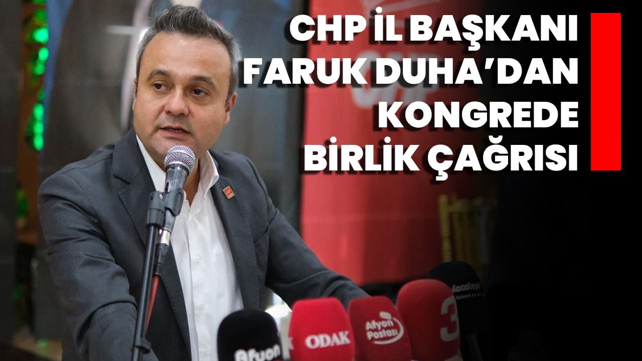 Kongrede konuşan CHP İl Başkanı Faruk Duha Erhan, partinin birlik ve dayanışma mesajlarını vurgulayarak yeni yönetim kuruluna başarı dileklerinde bulundu.