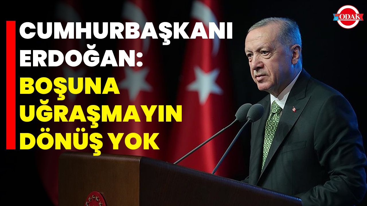 Cumhurbaşkanı Recep Tayyip Erdoğan, Türkiye’nin iç ve dış siyasetini yıllardır terör üzerinden dizayn etmeye çalışan çevrelere karşı kararlılık mesajı verdi. Erdoğan, “Bu sefer boşuna kürek çekmekteler. Hiç boşuna uğraşmasınlar. Allah’ın izniyle buradan geriye dönüş olmayacak. Biz böyle bir duruma ne pahasına olursa olsun izin vermeyeceğiz” ifadelerini kullandı.