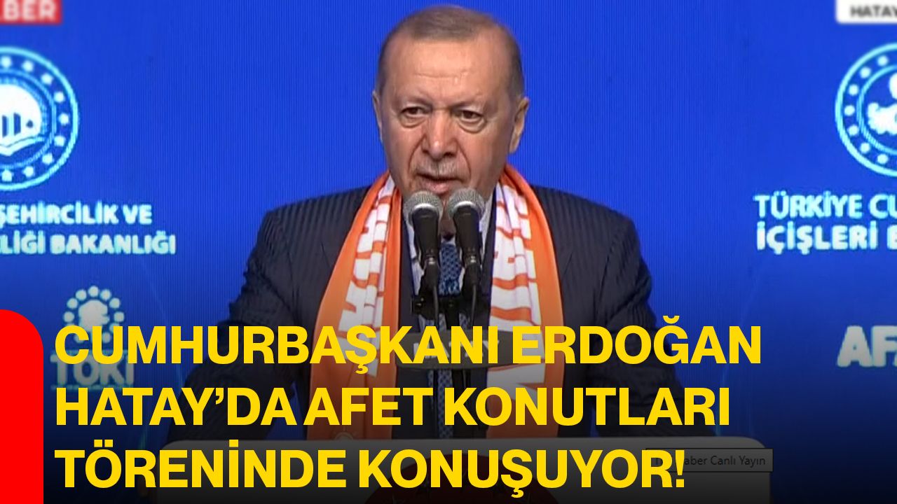 Cumhurbaşkanı Recep Tayyip Erdoğan, Hatay'da “455 Bininci Afet Konutu Kura Çekimi, Anahtar Teslimi ve Yapımı Tamamlanan Yatırımların Toplu Açılış Töreni”nde konuşuyor.