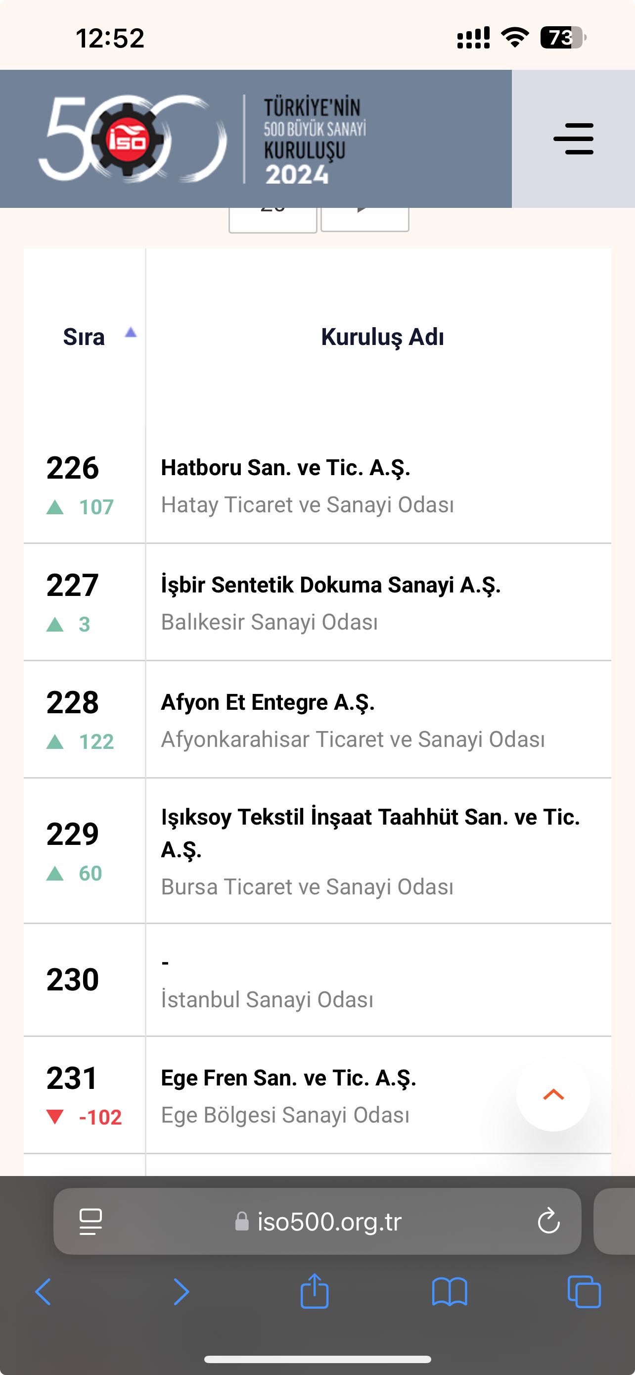 İSO’nun her yıl düzenli olarak yayımladığı rapor, sanayi firmalarının üretimden satış rakamlarına göre sıralandığı kapsamlı bir değerlendirme olarak öne çıkıyor. Cumhuriyet Sucukları’nın bu önemli listede tekrar yer alması Afyonkarahisar sanayisi adına da gurur kaynağı oldu.