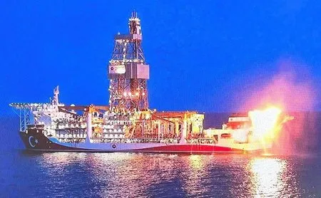 Türkiye... Denizde... Zeminin 2 bin metre... 2 bin 500 metre derinliğinde doğalgaz arıyor... Ve buluyor... Büyük başarı.