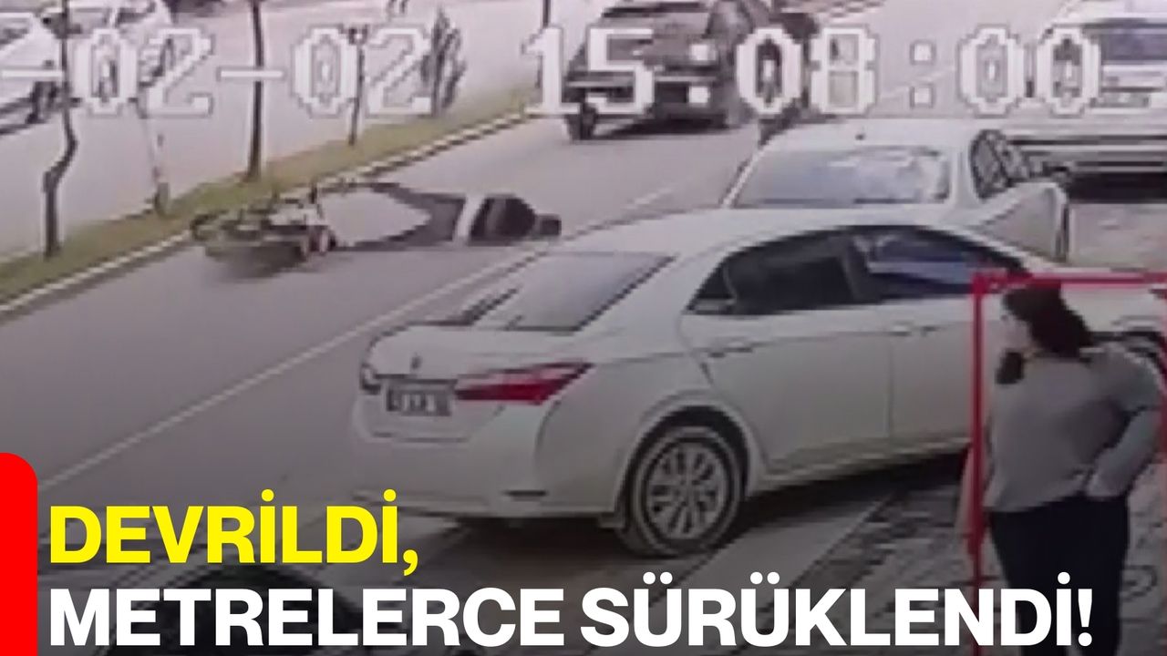 Kaza anı ise bir iş yerinin güvenlik kamerasına anbean yansıdı. Görüntülerde, motosikletin devrilmesiyle sürücünün metrelerce sürüklendiği, vatandaşların hızla yaralı sürücünün yardımına koştuğu görüldü.
