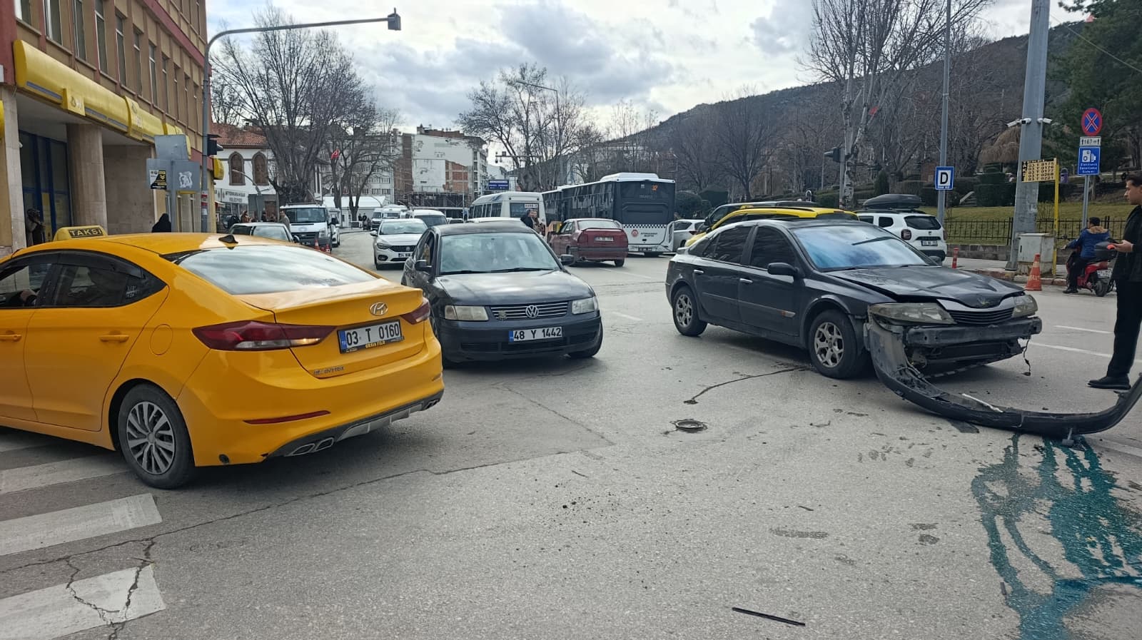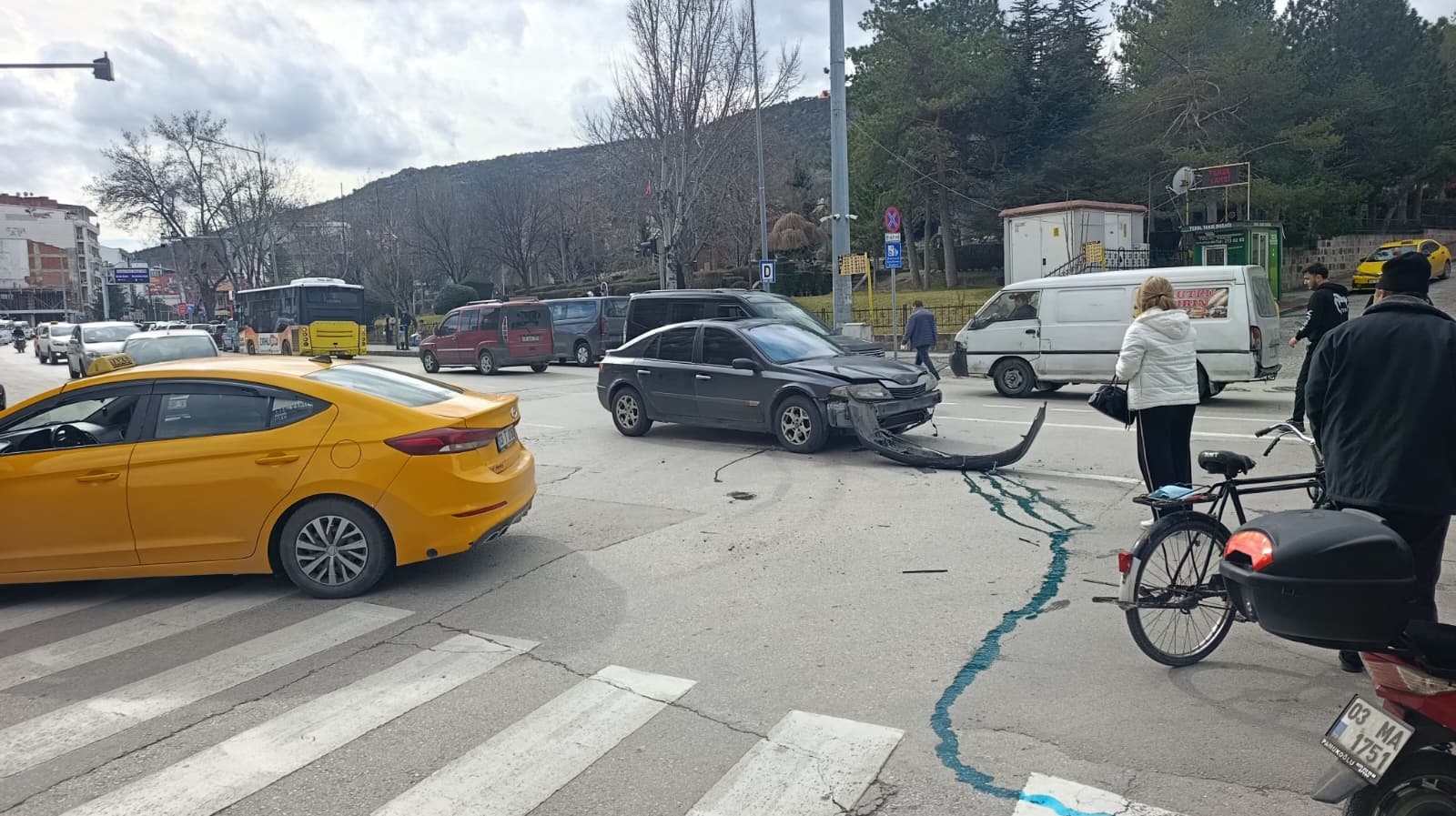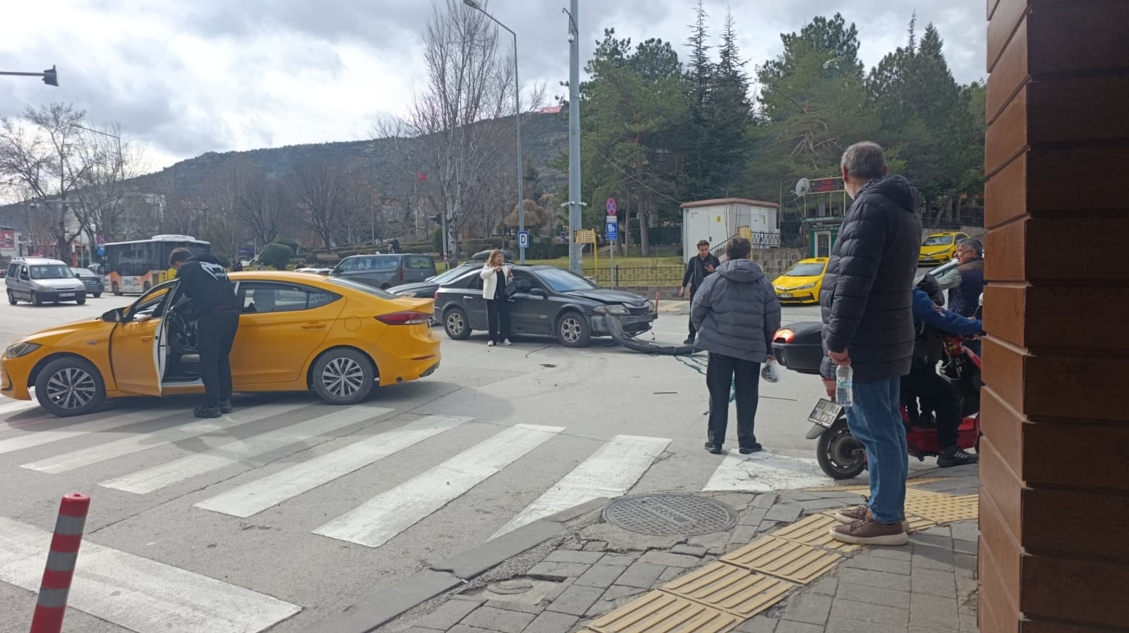 Edinilen bilgilere göre, PTT önünde dönerken bir taksi ile sivil araç çarpıştı. Kazada taksi sürücüsü ile diğer araçta bulunan bir kadın ve oğlu yara aldı. Olay yerine polis ve 112 sağlık ekipleri sevk edilerek gerekli müdahaleler yapıldı. Kazada ağır yaralanan kimsenin olmadığı öğrenildi. Kazayla ilgili inceleme başlatıldı.
