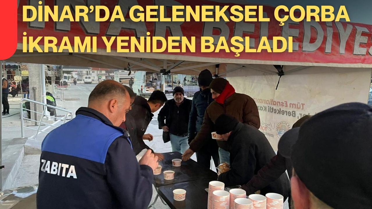 Dinar Belediye Başkanı Veysel Topçu’nun talimatları doğrultusunda, ilçede iki yıldır düzenli olarak sürdürülen Salı Pazarı esnafına sıcak çorba ikramı, soğuk kış günlerinin etkisini göstermesiyle yeniden başladı. Uygulama, pazarcı esnafı tarafından memnuniyetle karşılandı.