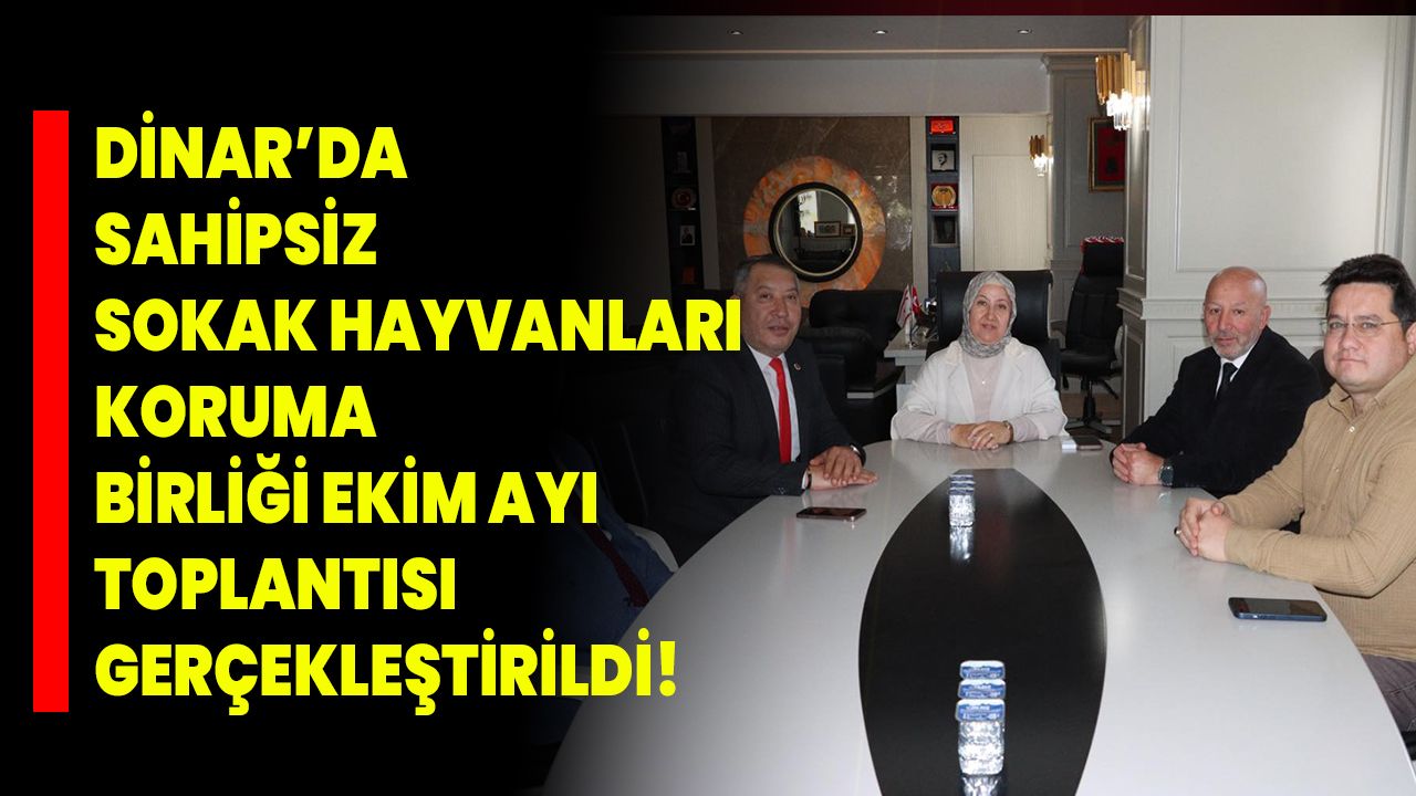 Afyonkarahisar Sahipsiz Sokak Hayvanları Koruma Birliği’nin Ekim ayı encümen toplantısı, İscehisar Belediye Başkanı Seyhan Kılınçarslan başkanlığında yapıldı. Toplantıya, Dinar Belediye Başkanı Veysel Topçu, İl Genel Meclis Başkanı Mehmet Siper, Bolvadin Belediye Başkanı Derviş Aynacı ve Birlik Müdürü Sadullah Dinç katıldı.