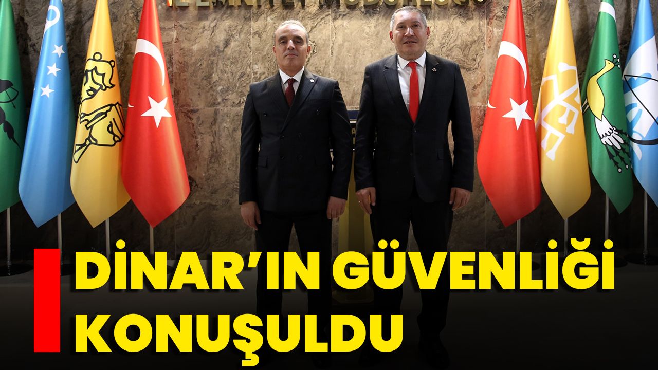 Gerçekleşen ziyarette, Dinar ilçesinde yürütülen güvenlik çalışmaları ve yerel yönetimlerle iş birliği konularında görüş alışverişinde bulunuldu.