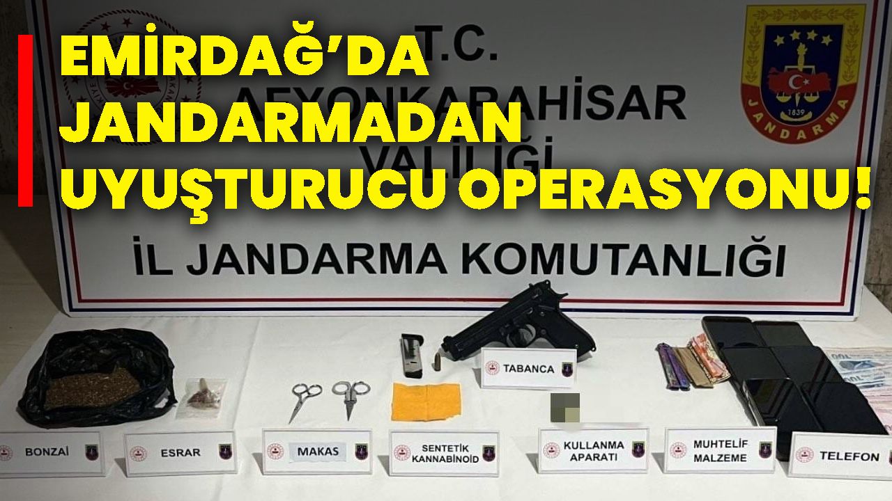 Jandarma ekiplerince yapılan aramalarda 20 gram bonzai, 2 gram tütüne karıştırılmış esrar, 2 gram sentetik kannabinoid (180 kullanımlık peçete), 1 adet kurusıkı tabanca, 1 adet uyuşturucu madde öğütme aparatı ve 4 adet cep telefonu ele geçirildi.