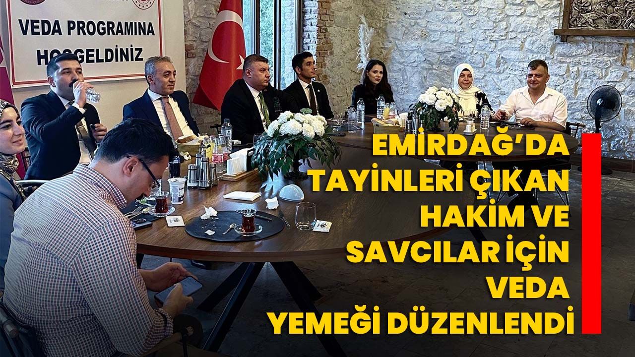 Veda yemeği, Bolvadin Cumhuriyet Başsavcısı Nuh Mete Yüksel, Emirdağ Cumhuriyet Savcısı Süleyman Kaan Yılmaz, Hâkimler Şeyma Yılmaz, Ali Şansal Kurur, Selma Karakaş Kurur ile İcra Müdürü Mustafa Karadağ için düzenlendi.