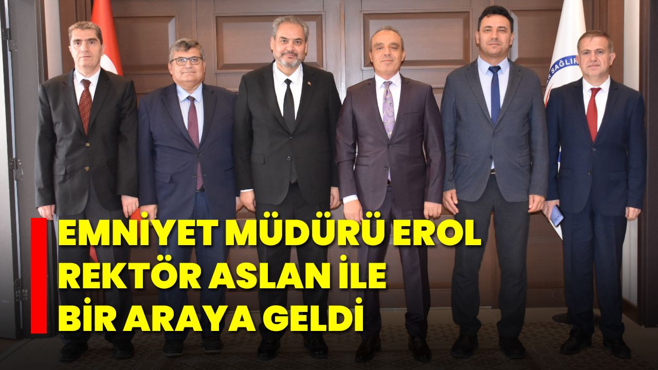 Görüşmeye, Rektör Yardımcıları Prof. Dr. Ümit Dündar, Prof. Dr. İbrahim Keleş ve Prof. Dr. Ahmet Ali Tuncer’in yanı sıra Genel Sekreter Vekili Murat Zengin de katıldı. Rektör Prof. Dr. Aslan, İl Emniyet Müdürü Erol’un ziyaretinden duyduğu memnuniyeti dile getirerek teşekkürlerini iletti.
