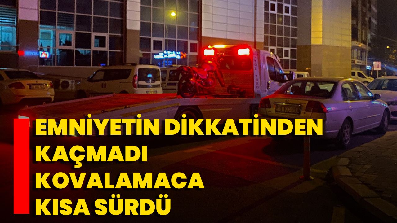 Afyonkarahisar'da, çaldığı motosikletle sokağa çıkan E.G. isimli şahıs, emniyet ekiplerinin dur ihtarına uymayarak kaçmaya başladı. Şahıs, kısa süren kovalamanın ardından Karaman Mahallesi Açelya Sokak üzerinde durdurularak gözaltına alındı.