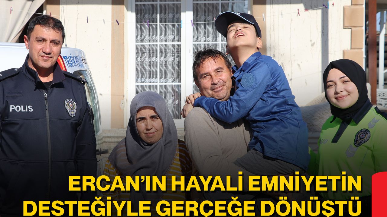 Ercan’a üniforma giydirilerek polislik deneyimi yaşatılırken, emniyet personeli ona şehir içinde özel bir devriye turu sundu. Çocuk için hazırlanan bu sürpriz, hem ailesi hem de tüm ekipte büyük bir mutluluk oluşturdu.
