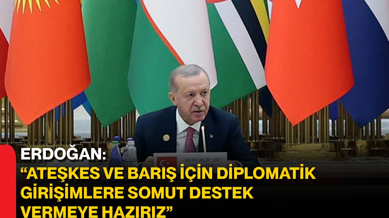 Cumhurbaşkanı Erdoğan, küresel ölçekte çatışmaların ve belirsizliklerin arttığı bir dönemde uluslararası iş birliği ve diyaloğun hayati önemde olduğunu belirterek, Türkiye’nin barışın tesisi için sorumluluk almaya devam ettiğini ifade etti. Rusya ile Ukrayna arasında süren savaşın sona ermesinin en samimi temennileri olduğunu dile getiren Erdoğan, “İstanbul Süreci başta olmak üzere ateşkes ve barışa yönelik diplomatik girişimlere somut destek vermeye hazırız.” dedi.