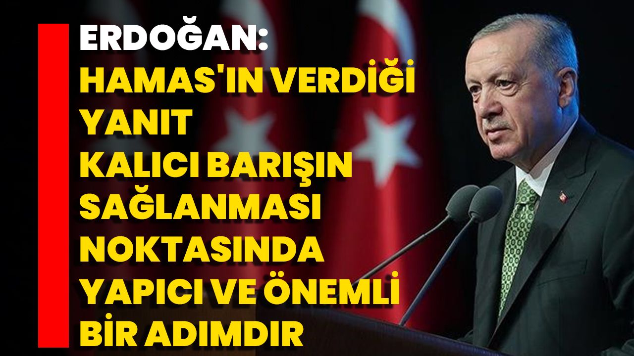 Cumhurbaşkanı Recep Tayyip Erdoğan, Hamas'ın Gazze'de ateşkesin tesisine yönelik plana verdiği yanıtın, kalıcı barışın sağlanması noktasında yapıcı ve önemli bir adım olduğunu belirtti.