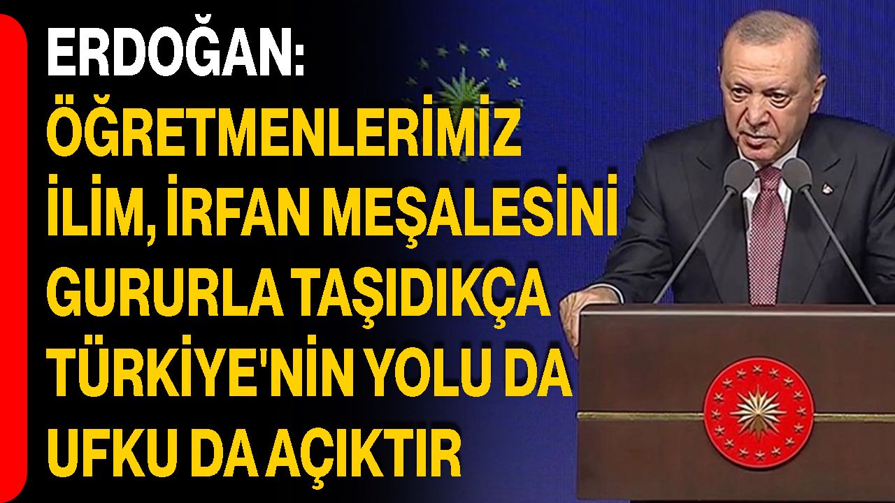 Cumhurbaşkanı Recep Tayyip Erdoğan, "Öğretmenlerimiz, ilim, irfan, hikmet ve ahlak meşalesini ellerinde gururla taşıdıkça, Allah'ın izniyle Türkiye'nin yolu da ufku da sonuna kadar açıktır." dedi.