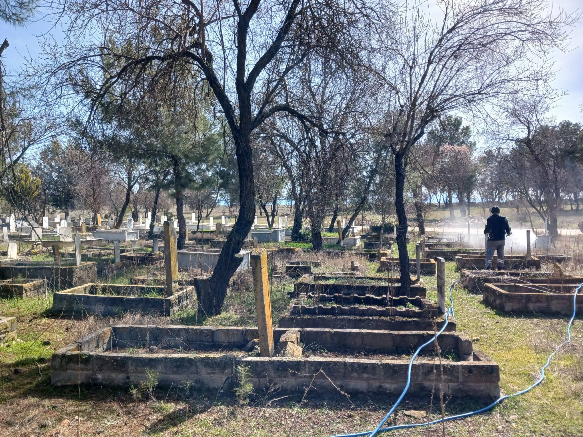 Belediye ekipleri, mezarlık alanında hem çevre temizliğini sağlamak hem de halk sağlığını korumak amacıyla düzenli olarak ilaçlama uygulaması yapıyor. Yapılan çalışmalar kapsamında yabani ot temizliği, genel bakım ve hijyen uygulamaları sürdürülüyor.